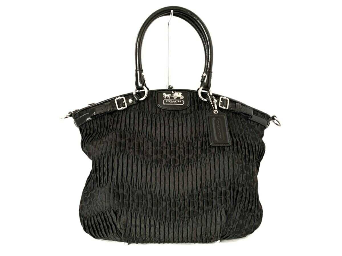 COACH(コーチ) ハンドバッグ マディソン ギャザード シグネチャー リンジー 18928 黒 ギャザー ナイロン×エナメル(レザー)【20200608】【中古】【dfn】