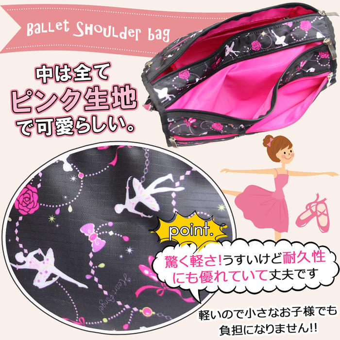 商品名:バレエバッグ 【送料無料】 ショルダーバッグ レッスン スポーツ お稽古 おしゃれ かわいい キッズ 人気 ジュニア ダンス 衣装バッグ 斜めがけ ナイロン 軽量 軽い 斜め掛け 商品カテゴリ:スポーツ・アウトドア>体操・ダンス>バレエ>その他 バリエーション展開:ブラック(Black)