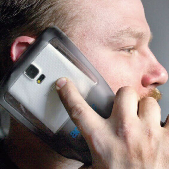 着信音はもちろんケースに入れたままで会話OK! 背面部もカメラに対応した"視界クリアパネル"でアクアパックに入れたままカメラ撮影ができます。