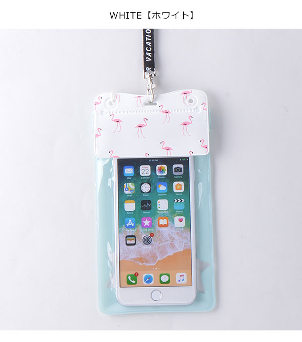 ショルダーが付いているので、海やプールでも持ち歩けてとても便利です!クリアタイプなので、ケースから出さなくても画面が見えるのもポイントですよ。